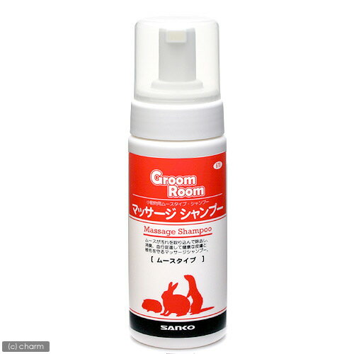 ムースタイプのシャンプーですっきり!Groom Room マッサージシャンプー ムースタイプ価格: 1,550円レビュー評価: 0.0 レビュー数:0 GroomRoom マッサージシャンプー ムースタイプ小動物用ムースタイプ・シャンプー! 植物性生薬配合石鹸ベースで、無香料・無着色・ノンアルコールの安全なシャンプーです。水なしでも使えるから、いつでも手軽に安心して使えます。 無駄な汚れを取り、優れた血行促進効果・消臭・抗菌効果で、健康な皮膚と皮毛を保ち人の肌もいたわります。早く乾かすためのアルコールや香料・着色料等も使用していませんので、ふき取りだけでも安全なムースタイプのシャンプーです。 【特長】 ○植物性生薬配合石鹸ベース ○無香料 ○無着色 ○ノンアルコール 【対象動物】 ウサギ、フェレットなど小動物 【ご使用方法】 ムースを手に取り |